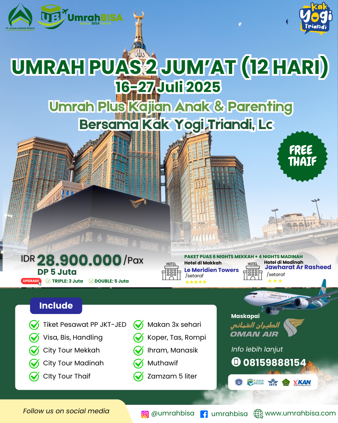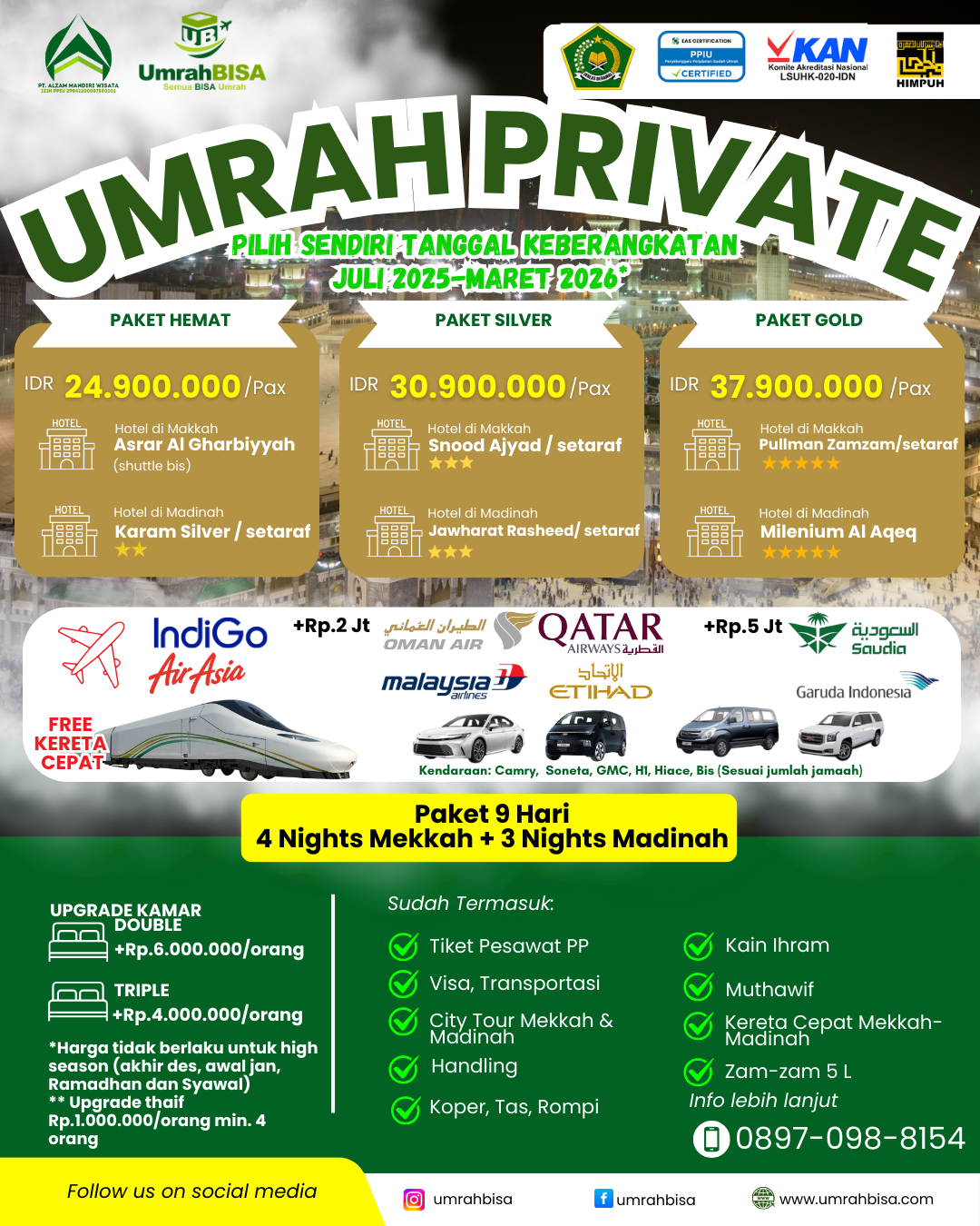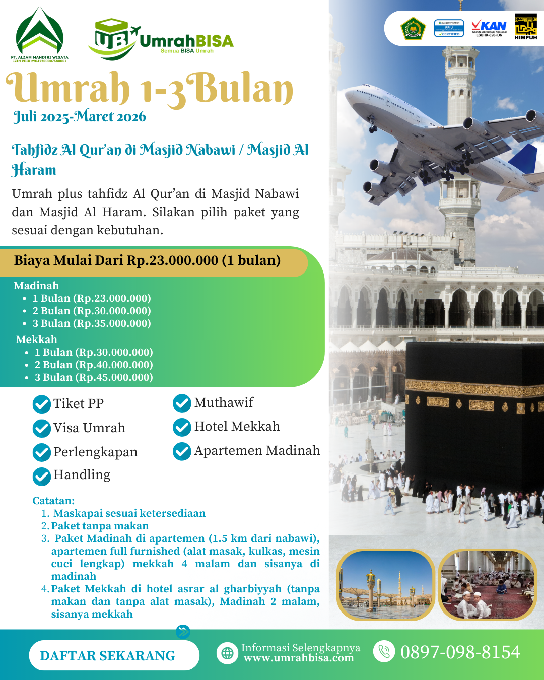 Berikut brosur dari paket umrah yang masih aktif. Silakan mendaftar via WA 0815-988-8154