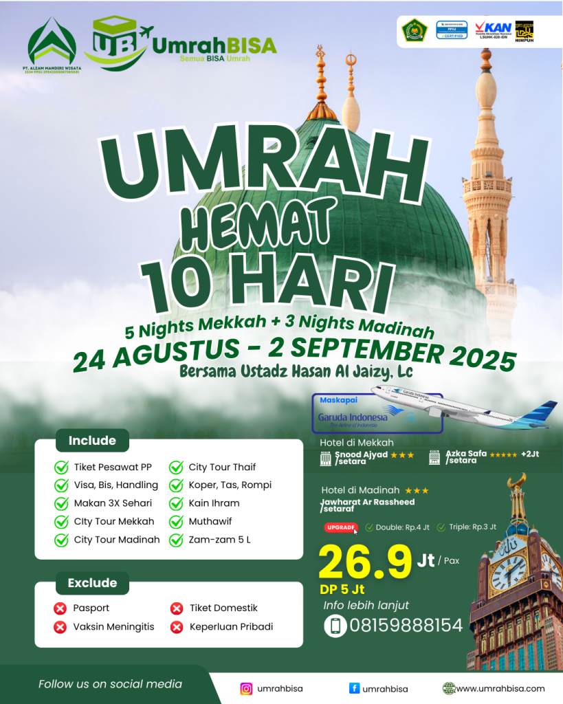 Selamat datang di Umrah BISA! 🕌🌙 Kami menyediakan layanan travel umrah dengan paket umrah hemat yang terjangkau dan berkualitas. Dengan pengalaman kami yang banyak, Anda bisa merasa tenang dan nyaman saat menjalankan ibadah umrah.✨✈️ Yuk, rencanakan perjalanan ibadah Anda bersama kami dan rasakan manfaatnya!