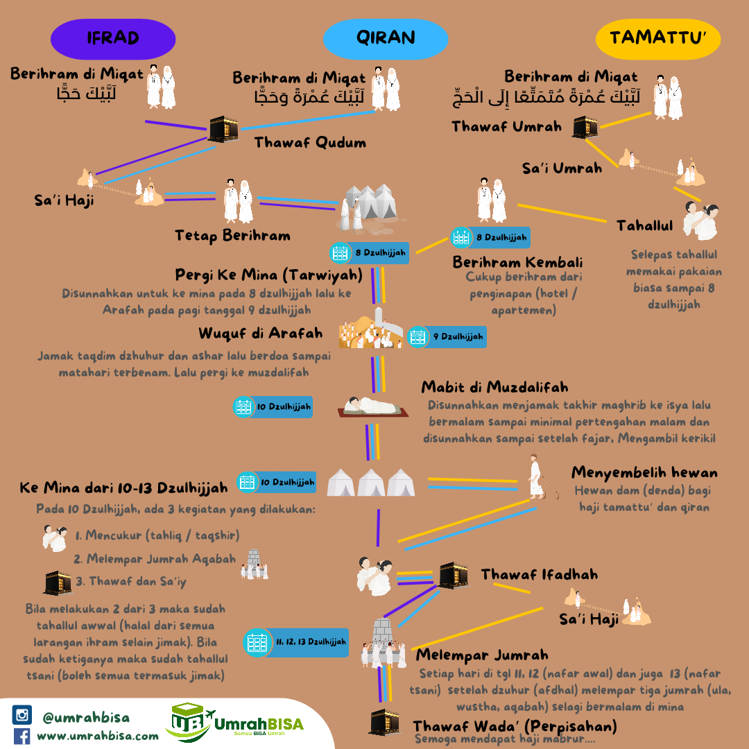 Ringkasan Rangkaian Ibadah Haji Tamattu’, Qiran, dan Ifrad